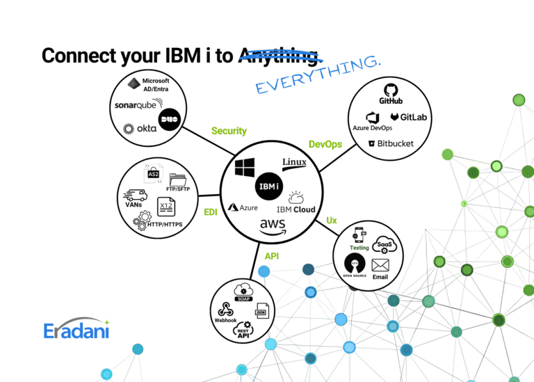 Your IBM i (AS400) is a powerhouse. The question isn’t whether it can keep up with modern technology. The question is whether your integration partner can. With 200+ years of combined IBM i experience on our team, Eradani was built for exactly this. We speak fluent RPG, COBOL, and modern API in the same breath. Whether you need to expose data via REST APIs, streamline EDI with trading partners, or bring true Git-based DevOps to your IBM i shop, we’ve done it hundreds of times across manufacturing, logistics, retail, and beyond. No forced cloud migrations. No vendor lock-in.